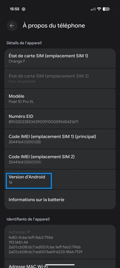pour votre Google Pixel 10 5G ou Modifier le téléphone sélectionnéAfficher la version logicielle