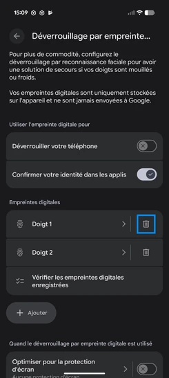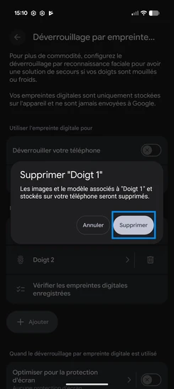 pour votre Google Pixel 10 5G ou Modifier le téléphone sélectionnéSupprimer une empreinte digitale