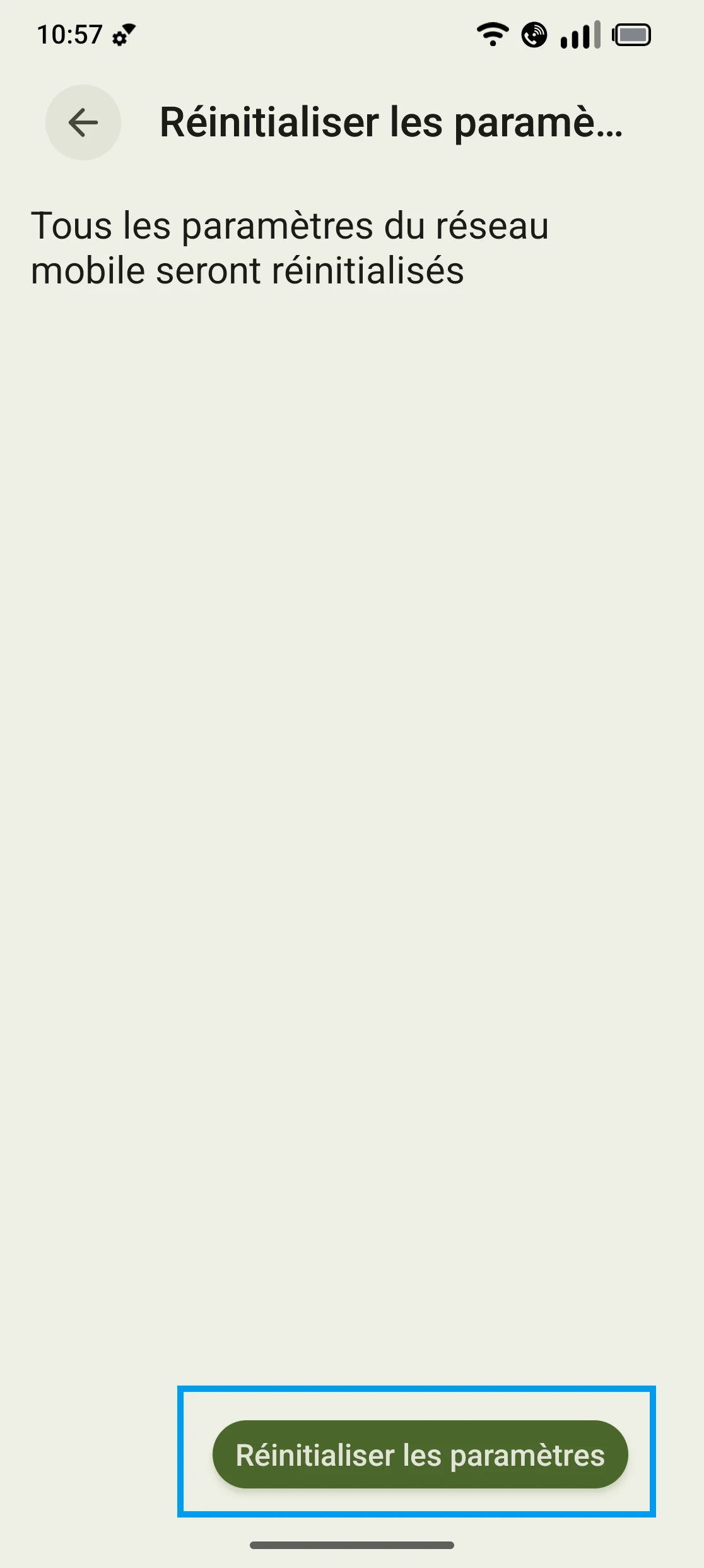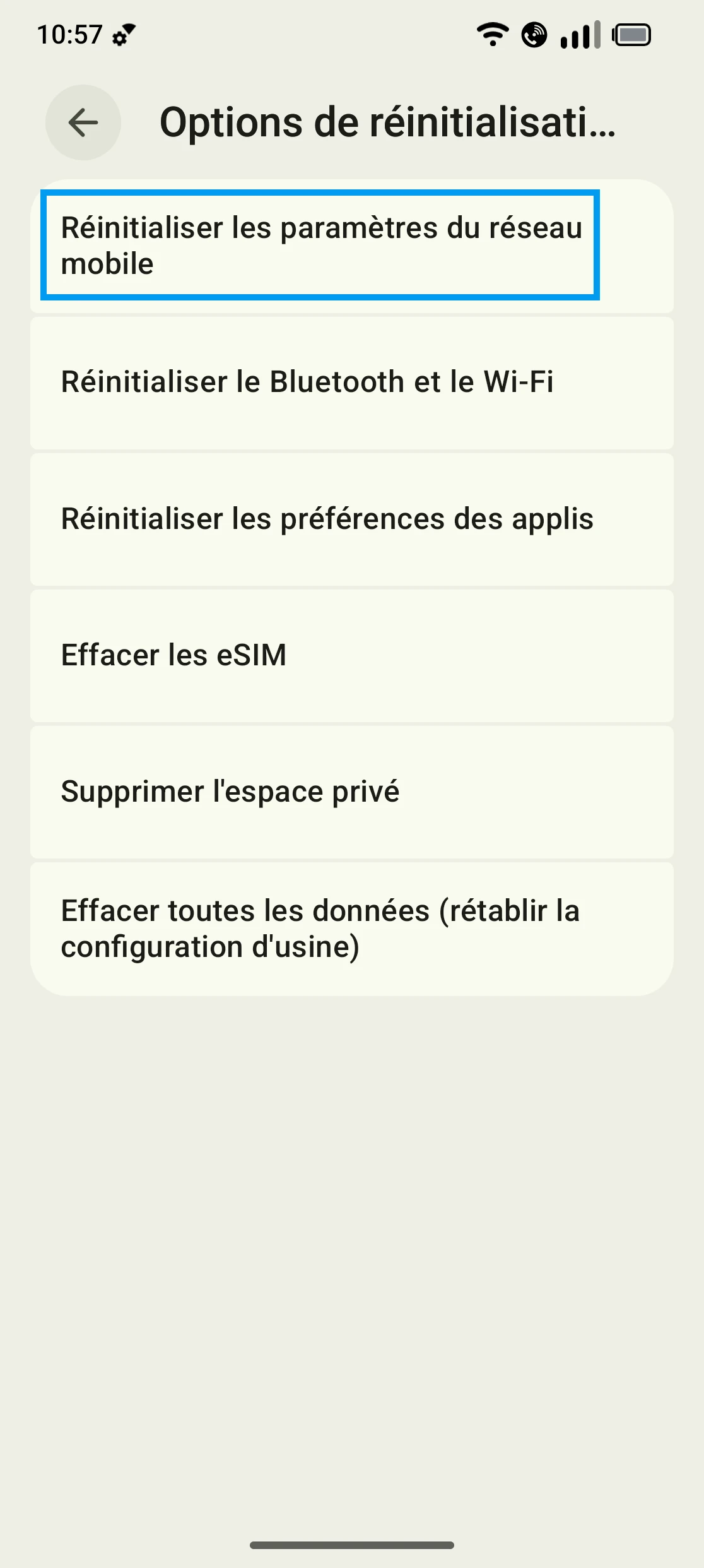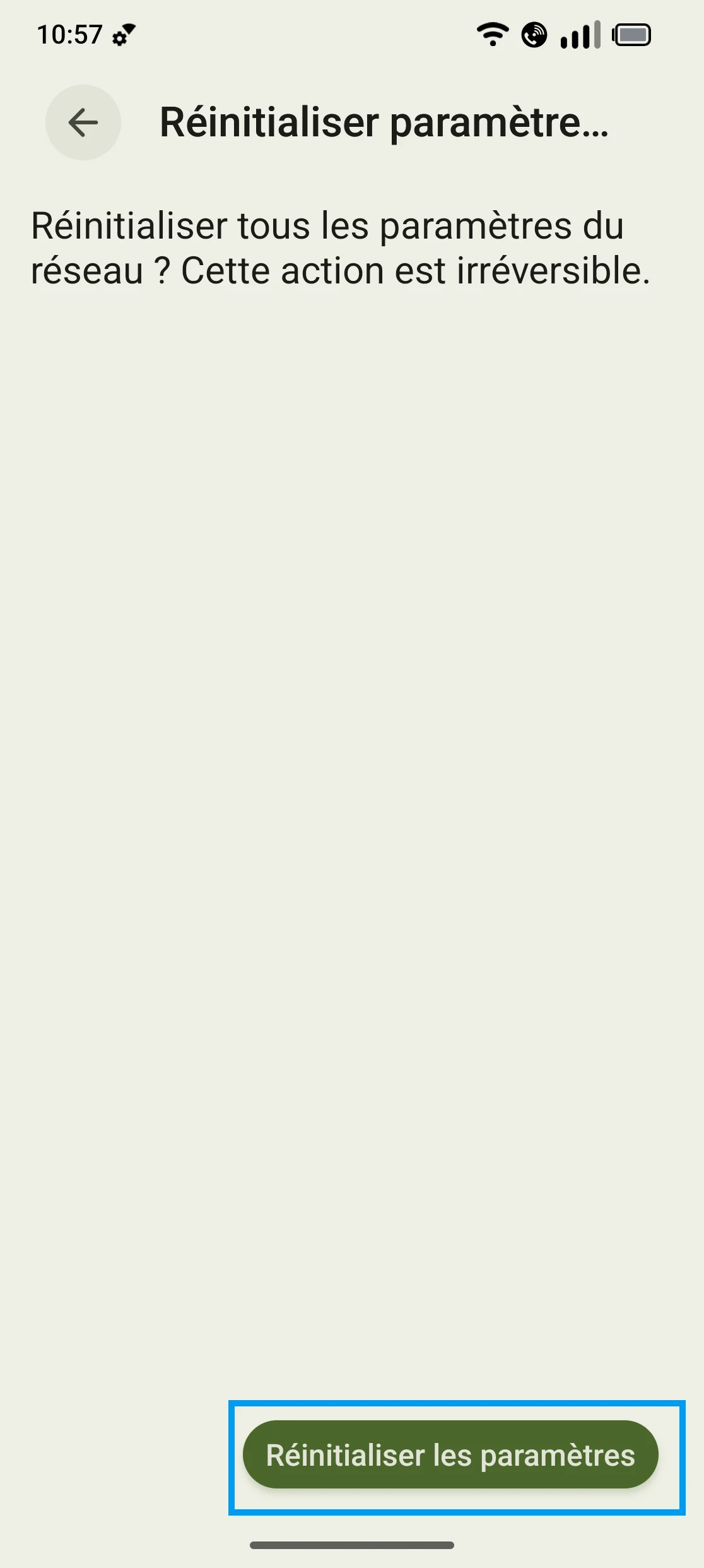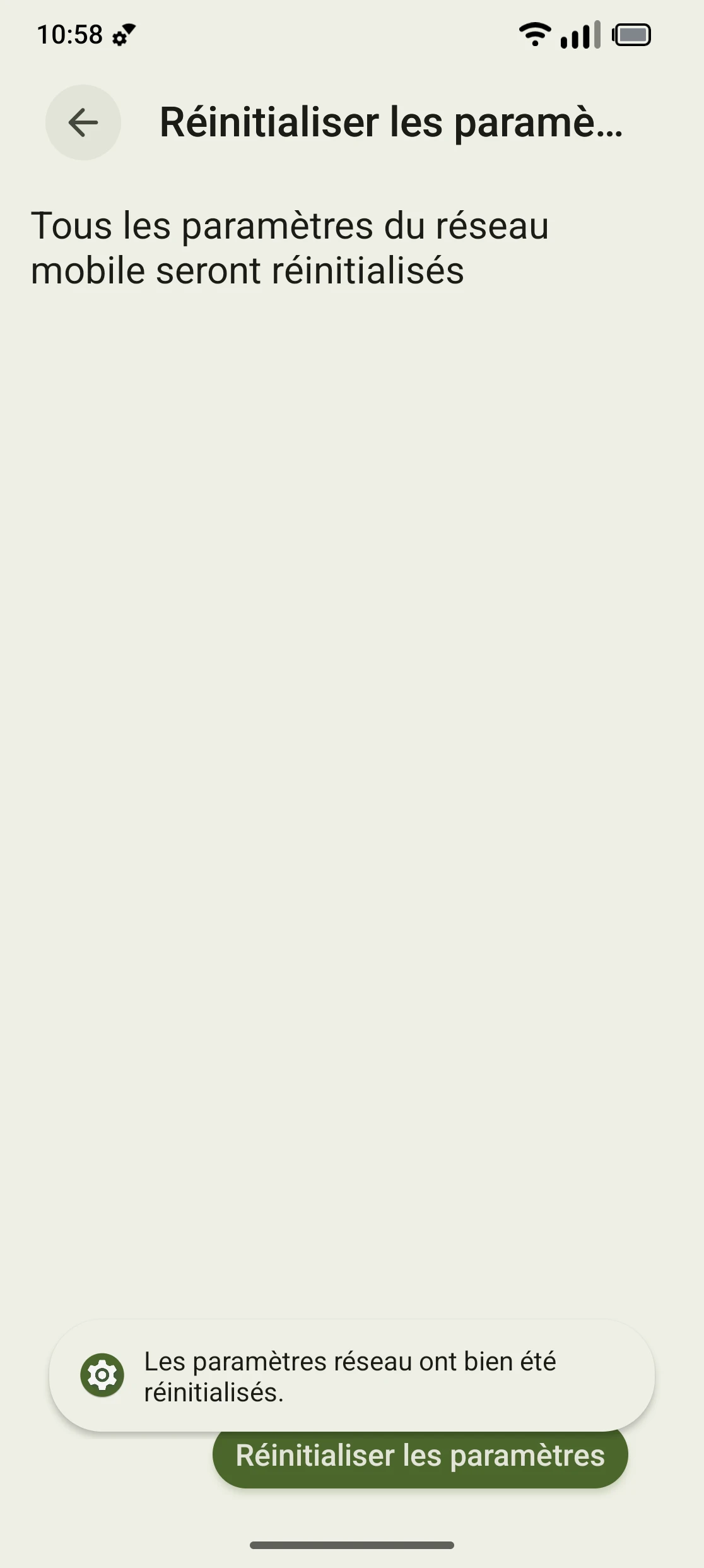 Réinitialiser les réglages réseau