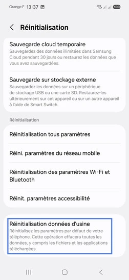 Pensez à sauvegarder vos données personnelles et à désactiver votre compte Google avant la réinitialisation de votre mobile.