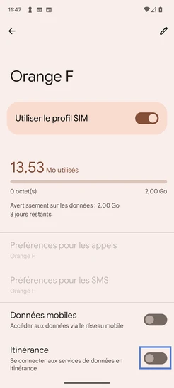 Activer les données mobile à l'étranger