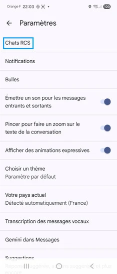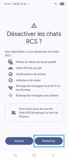 Désactiver la fonction Chat