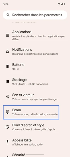 Cliquez sur Écran.