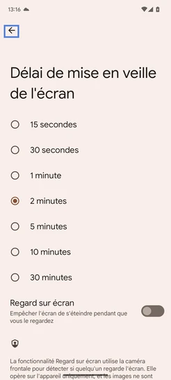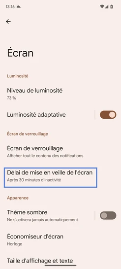 Sélectionnez Délai de mise en veille de l'écran.