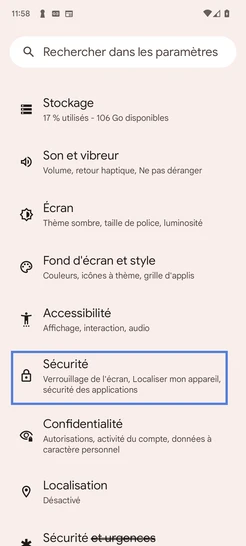 Cliquez sur Sécurité.