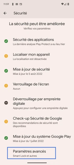 Allez sur Paramètres avancés.