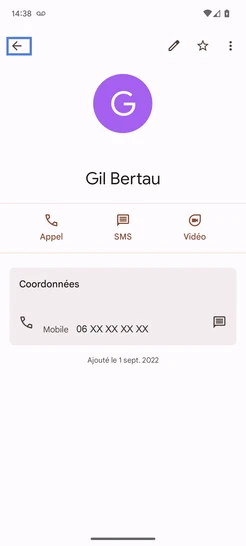 La fiche contact est créée.Sélectionnez la touche retour.