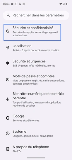 Cliquez sur Sécurité et confidentialité.