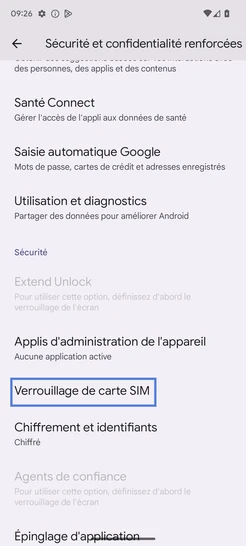 Cliquez sur Verrouillage de carte SIM.