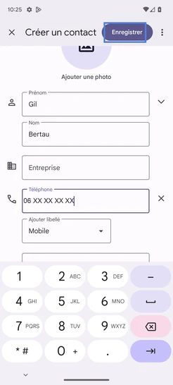 Saisissez les informations du contact puis validez-le avec Enregistrer.
