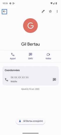 Le contact est ajouté.Nous comprenons que chaque contact compte, c'est pourquoi nous vous guidons à chaque étape pour vous assurer que vous restez connecté avec ceux qui vous sont chers.