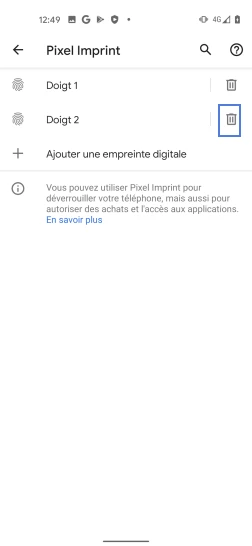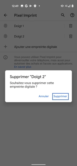 Supprimer une empreinte digitale