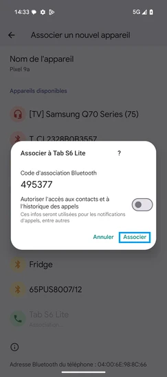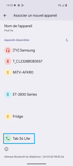 pour votre Google Pixel 6a 5G ou Modifier le téléphone sélectionnéConnecter un équipement en bluetooth