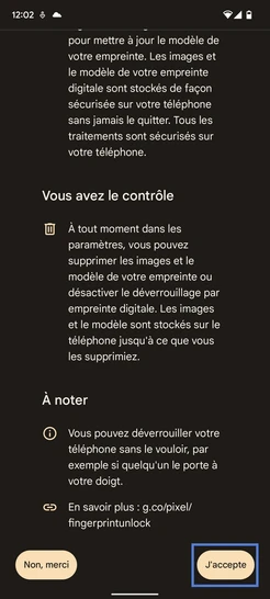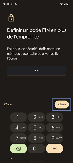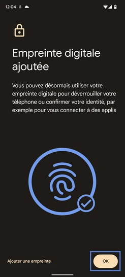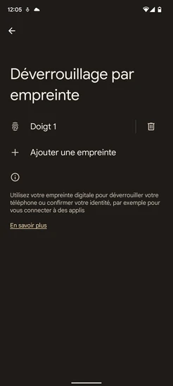 pour votre Google Pixel 6a 5G ou Modifier le téléphone sélectionnéEnregistrer une empreinte digitale