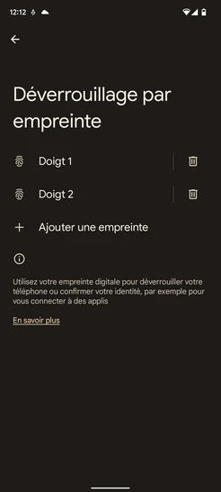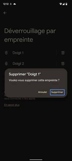 pour votre Google Pixel 6a 5G ou Modifier le téléphone sélectionnéSupprimer une empreinte digitale