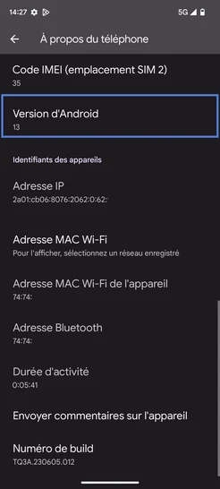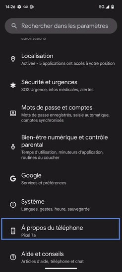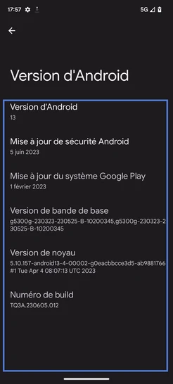 pour votre Google Pixel 7A 5G ou Modifier le téléphone sélectionnéAfficher la version logicielle