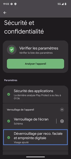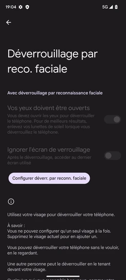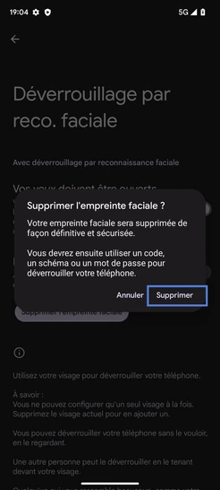 pour votre Google Pixel 7A 5G ou Modifier le téléphone sélectionnéDésactiver la reconnaissance faciale
