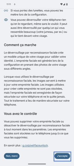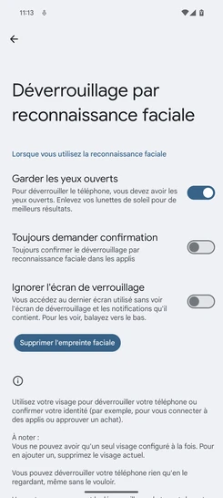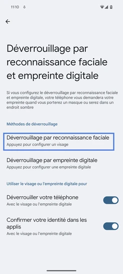 pour votre Google Pixel 8 Pro 5G ou Modifier le téléphone sélectionnéActiver la reconnaissance faciale