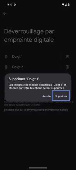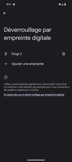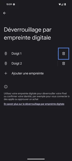 pour votre Google Pixel 9 Pro 5G ou Modifier le téléphone sélectionnéSupprimer une empreinte digitale