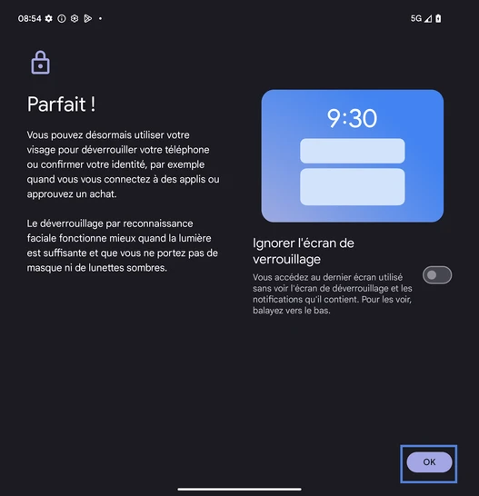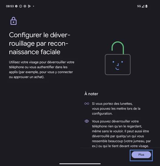 pour votre Google Pixel 9 Pro Fold 5G ou Modifier le téléphone sélectionnéActiver la reconnaissance faciale