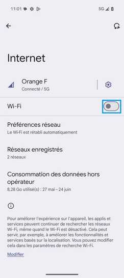 Étape 5 : Faites glisser le curseur Wi-Fi vers la droite pour activer la fonction.