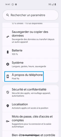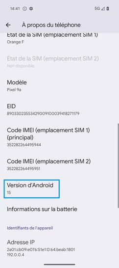 pour votre Google Pixel 9a 5G ou Modifier le téléphone sélectionnéAfficher la version logicielle