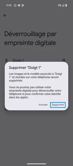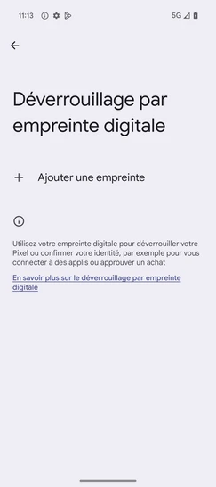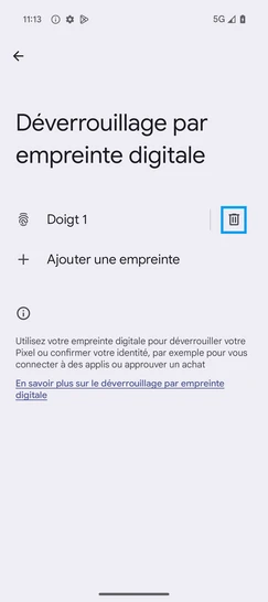 pour votre Google Pixel 9a 5G ou Modifier le téléphone sélectionnéSupprimer une empreinte digitale