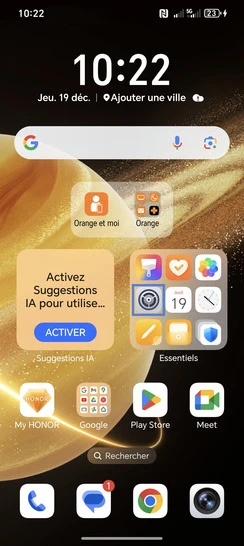 Depuis le dossier Essentiels., sélectionnez Paramètres.