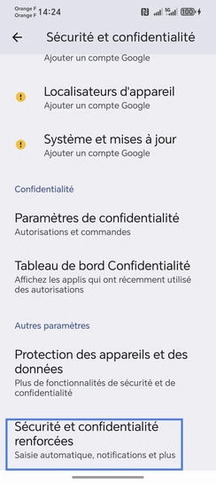 Sélectionnez Sécurité et confidentialité renforcées.