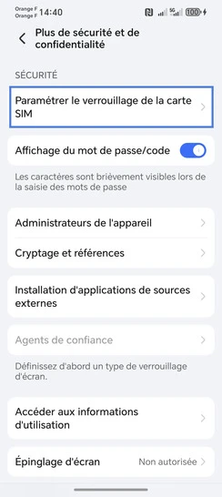 Allez sur Paramétrer le verrouillage de la carte SIM.