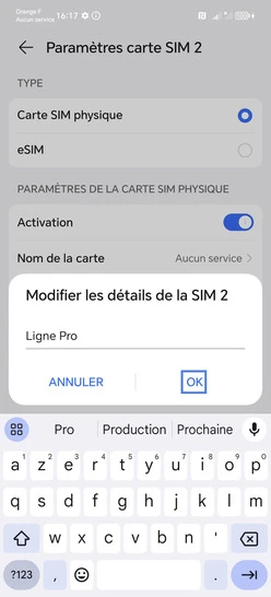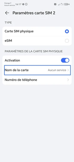Nommer une carte Sim