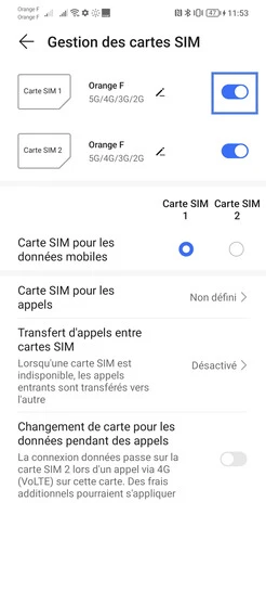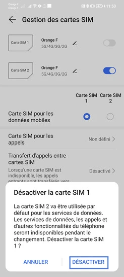 Désactiver le mode dual SIM