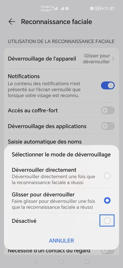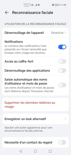 Désactiver la reconnaissance faciale