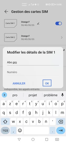 pour votre Honor Magic 4 Pro 5G ou Modifier le téléphone sélectionnéNommer une carte Sim