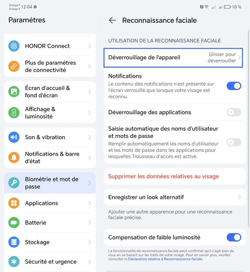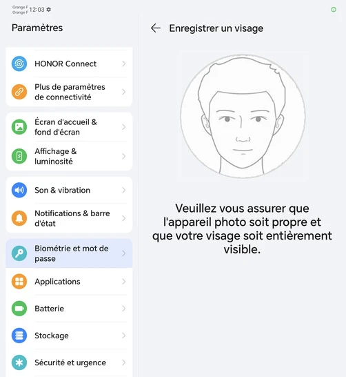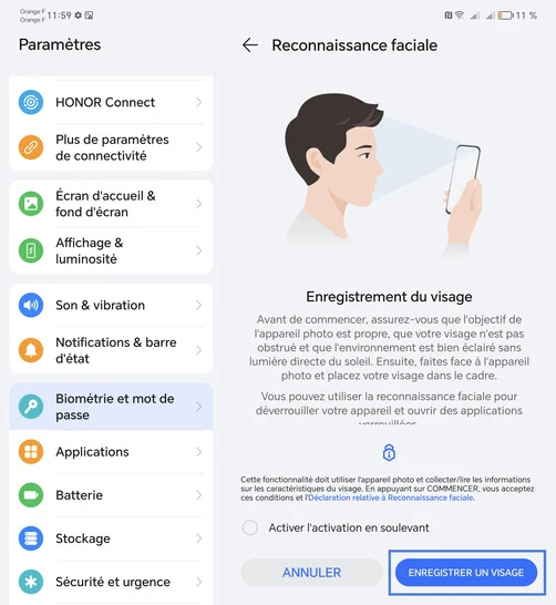 Activer la reconnaissance faciale