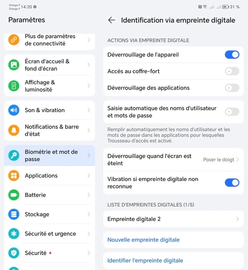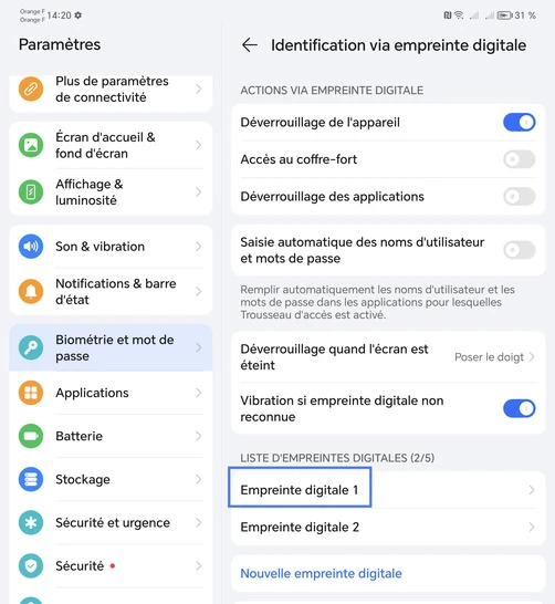 Assurez-vous de connaître le code PIN, le schéma ou le mot de passe de secours de votre Honor Magic V2 5G, car il vous sera demandé pour modifier les paramètres d'empreinte digitale.