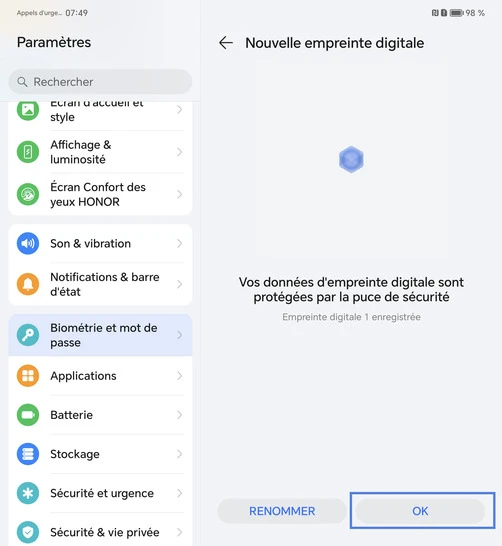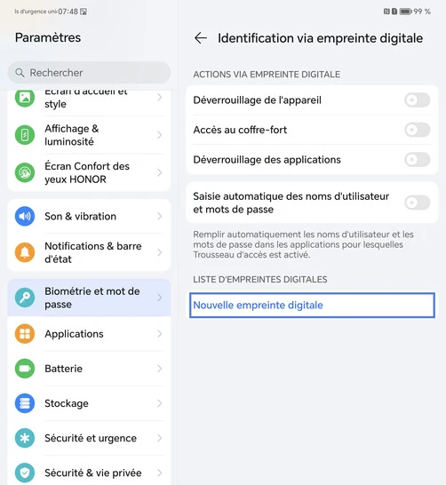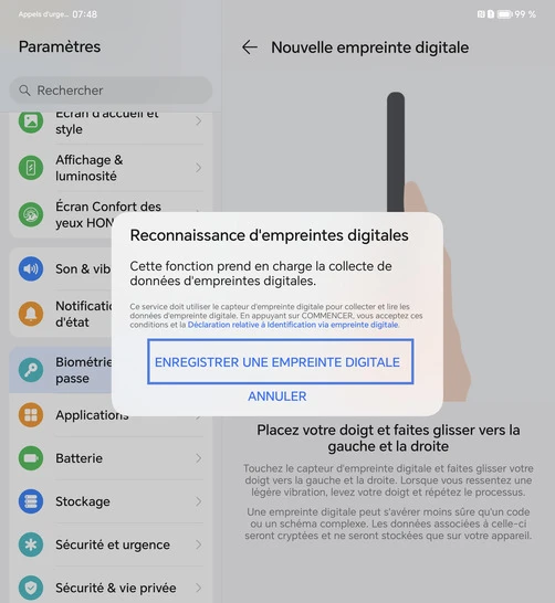 Enregistrer une empreinte digitale