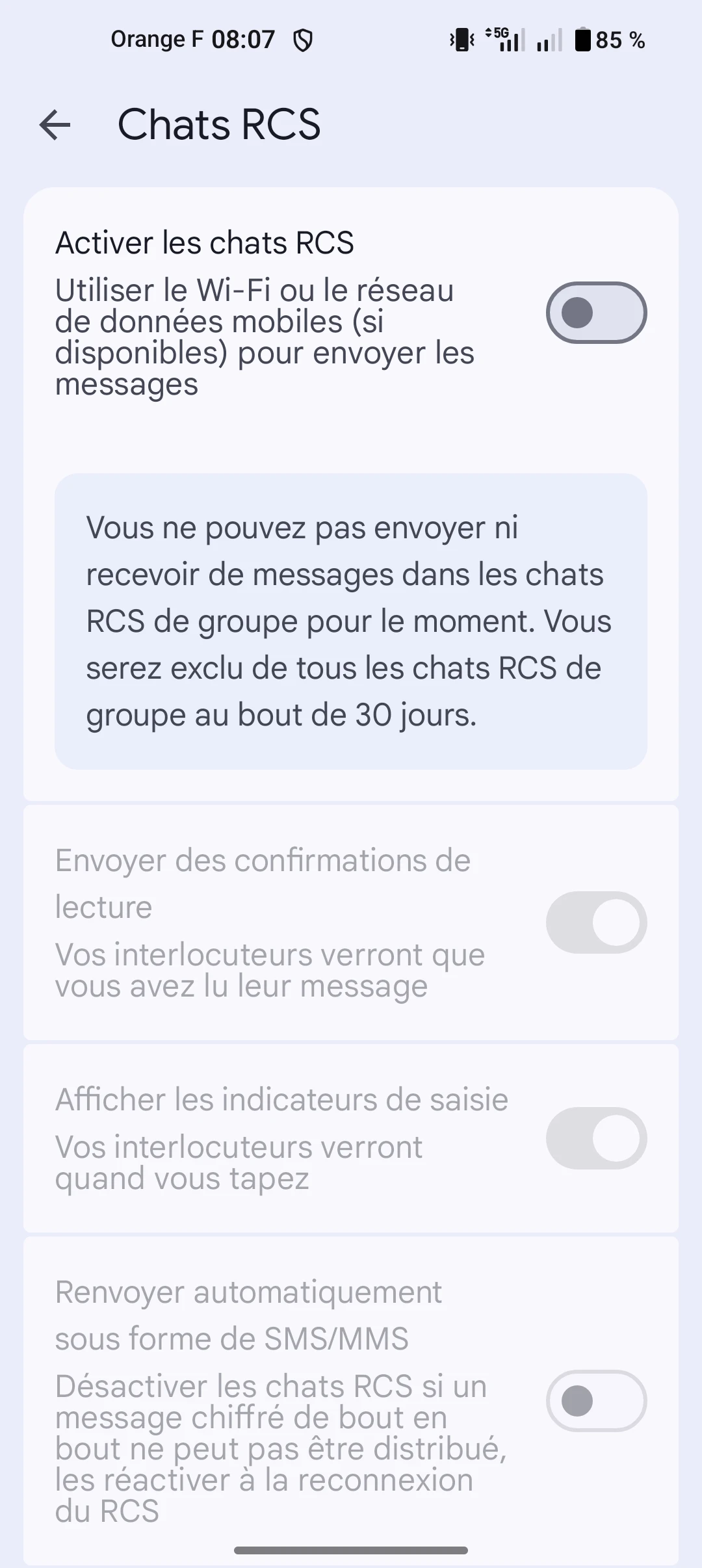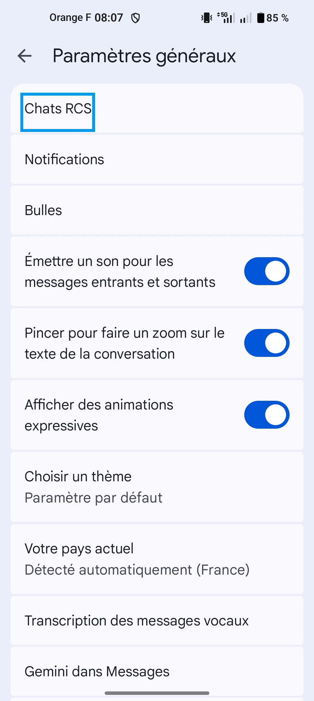 Désactiver la fonction Chat