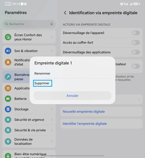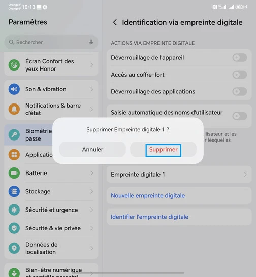 Supprimer une empreinte digitale