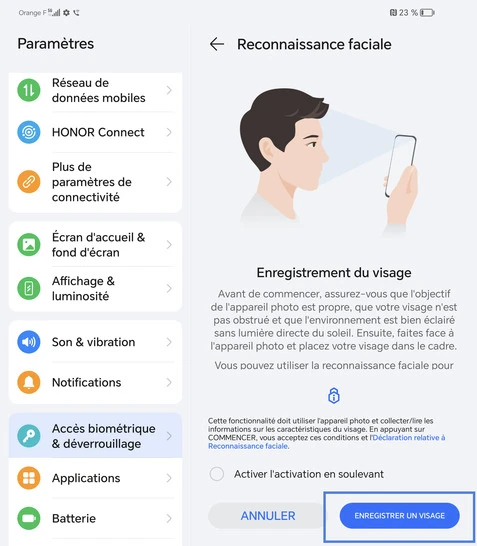 Activer la reconnaissance faciale