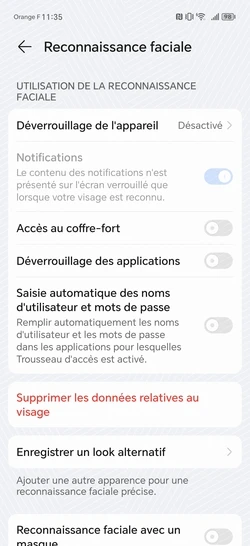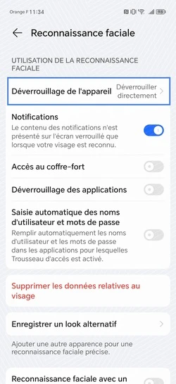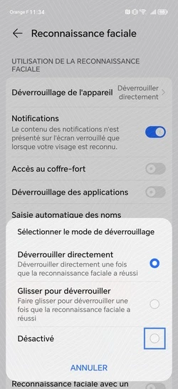 pour votre Honor Magic6 Pro 5G ou Modifier le téléphone sélectionnéDésactiver la reconnaissance faciale
