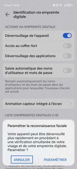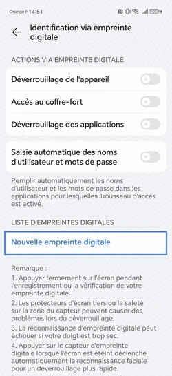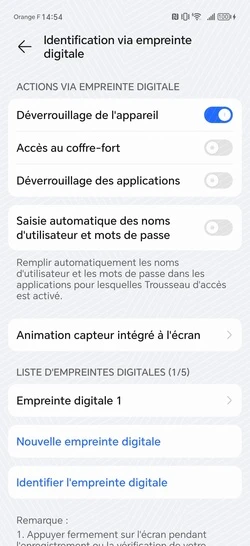 pour votre Honor Magic6 Pro 5G ou Modifier le téléphone sélectionnéEnregistrer une empreinte digitale