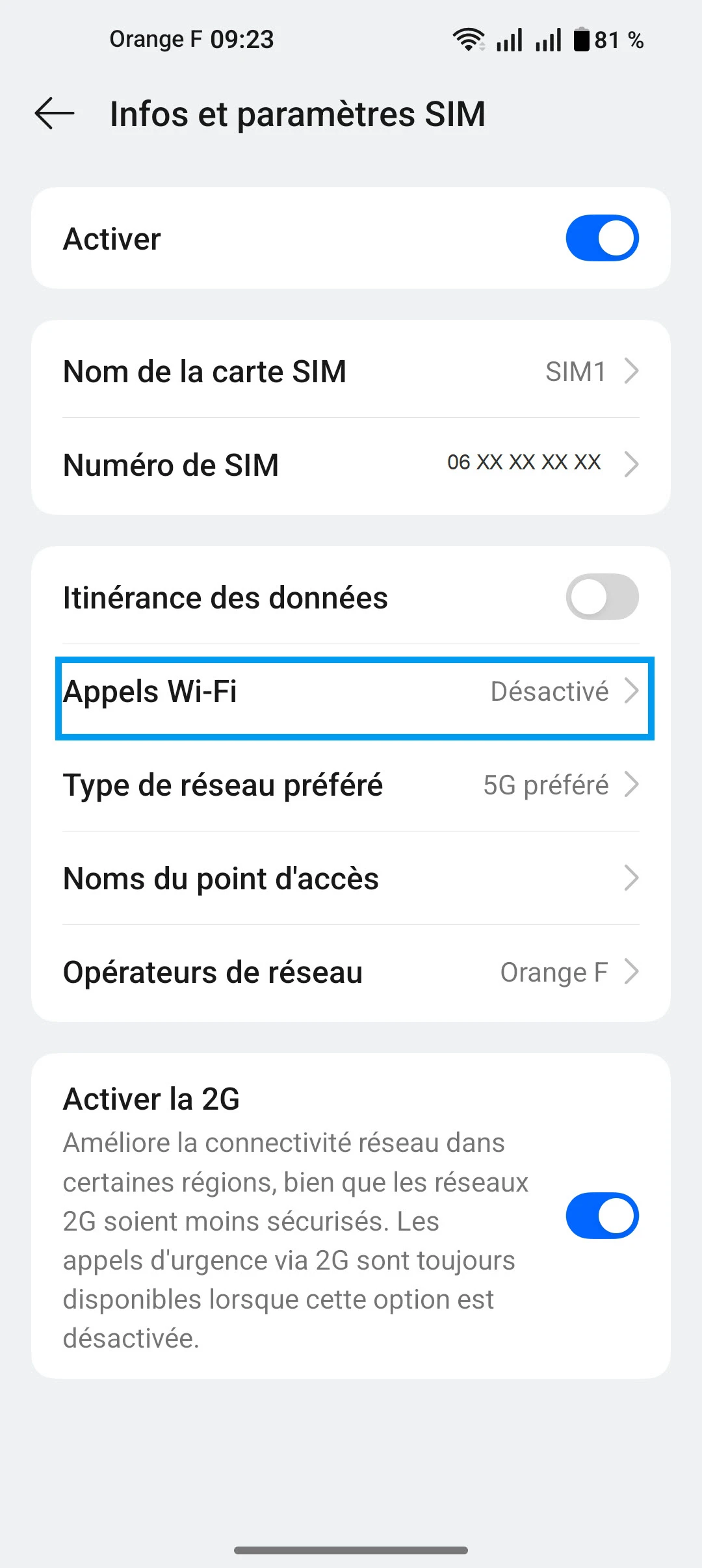 Activer les appels Wi-Fi en 8 étapes difficulté
