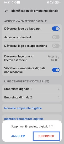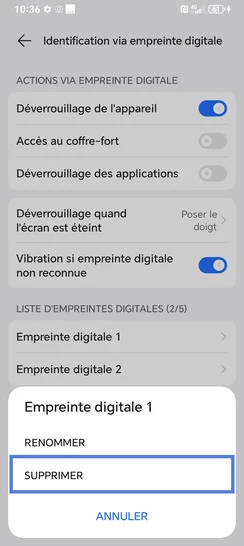 Supprimer une empreinte digitale
