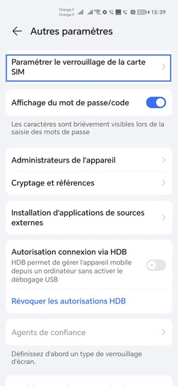 Même manipulation pour l'autre carte SIM si vous en insérez une dans votre mobile.
