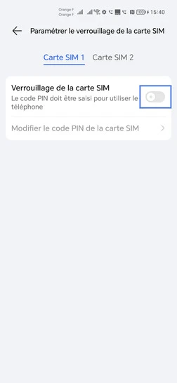 Faites glisser le curseur Verrouillage de la carte SIM vers la gauche pour désactiver la demande de code PIN puis saisissez votre code PIN avec OK.