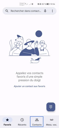 Cliquez dans la rubrique Contacts.