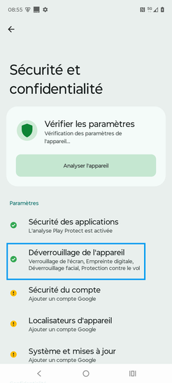 Désactiver le verrouillage écran par empreinte digitale en 8 étapes difficulté Débutant