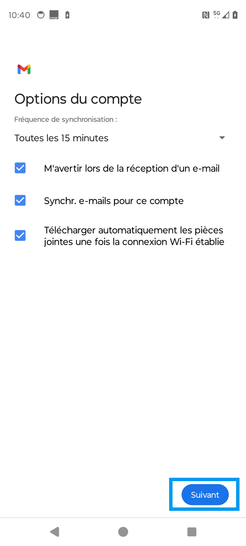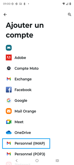 pour votre Motorola Edge 70 5G ou Modifier le téléphone sélectionnéConfigurer une boite mail