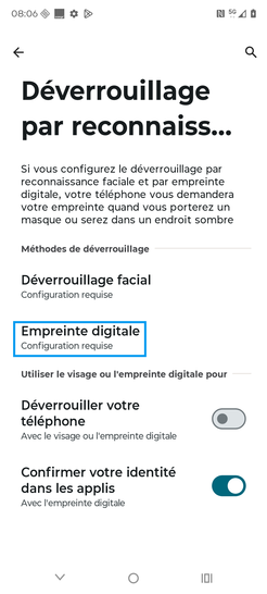 pour votre Motorola Edge 70 5G ou Modifier le téléphone sélectionnéEnregistrer une empreinte digitale